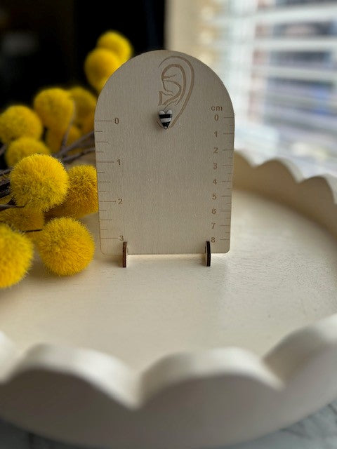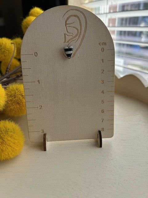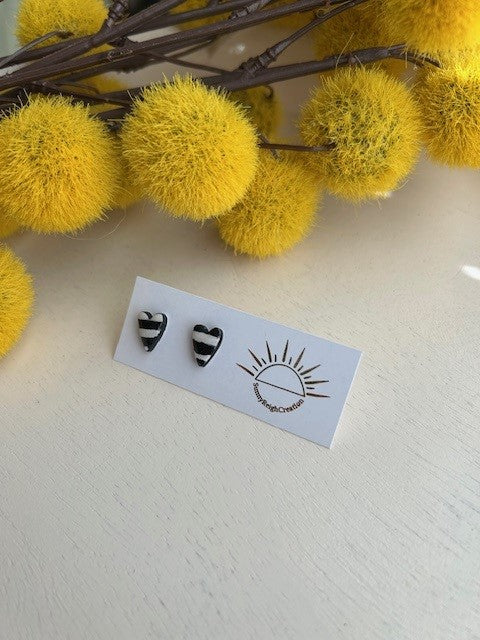 Black & White Striped Heart Stud Earrings | Small