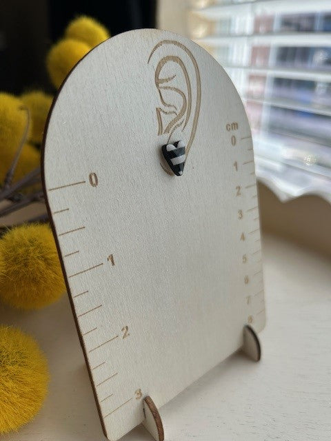 These charming handmade earrings feature a playful yet elegant heart-shaped design with a bold black-and-white striped pattern. The asymmetry in size adds a unique and artistic touch, making them a standout accessory. The glossy finish enhances the contrast between the stripes, giving them a sleek and modern appeal.