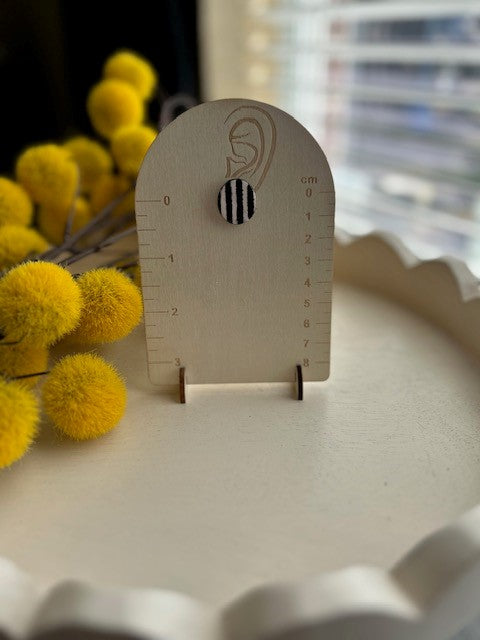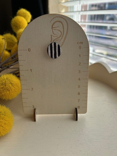 These stylish handmade earrings feature a bold black-and-white striped design on an oval base, creating a modern and eye-catching look. The irregular stripes add an organic, artistic touch, giving each piece a unique character. With a smooth, matte finish, these earrings balance contemporary minimalism with a touch of playful contrast.